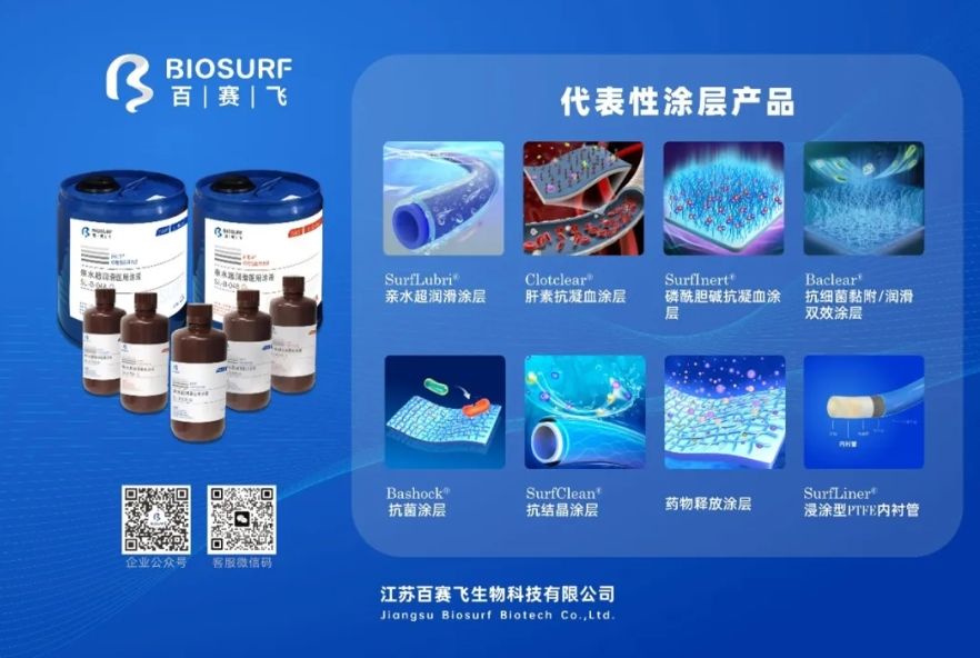 江苏百赛飞生物科技有限公司创始人陈红教授带领团队,基于二十余年生物材料表界面领域基础研究积累,用八年时间构建起从分子设计、涂层工艺到检测设备的医用功能涂层全产业链的技术平台;主导制定国内首个亲水涂层行业标准及两项抗凝血涂层一项抗菌涂层相关团体标准;破解医用涂层“卡脖子”难题,推动国产高端医疗器械涂层从跟跑到并跑甚至领跑的跨越。
