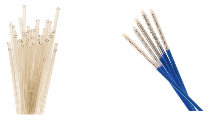 聚酰亚胺重量轻、柔韧性好、耐热且耐化学作用,被广泛应用于医疗器械。与挤压管材相比,脉通智造” 的独特工艺还能制造出壁更薄、外径(OD)更小(壁低至 0.0006 英寸,外径低至 0.086 英寸)的管材,并具有更高的尺寸稳定性。此外,脉通智造™的聚酰亚胺(PI)管材、PI/PTFE 复合管材、黑色PI管材、黑色 PI管材和编织增强型 PI管材可根据图纸进行定制,以满足不同的要求。