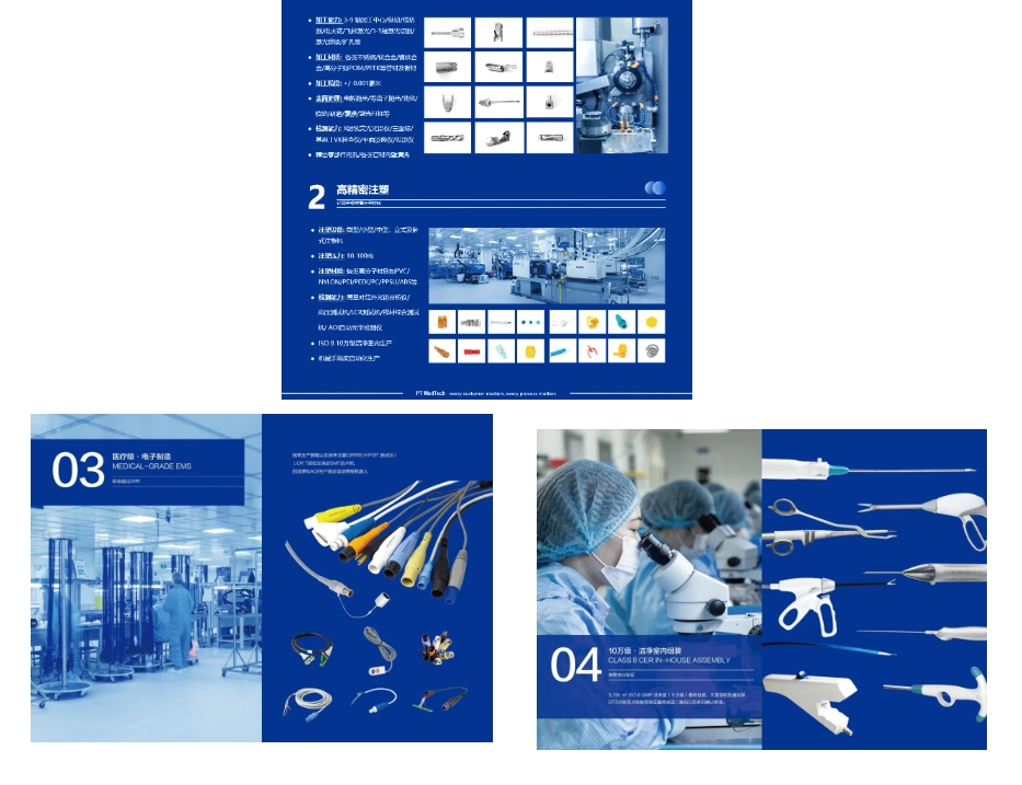 医疗塑胶耗材定制 ●协助客户优化产品设计 ●精密医疗模具开制 ●GMP车间精密注塑生产,亲水表面处理 ●无菌医疗产品、二类医疗器械