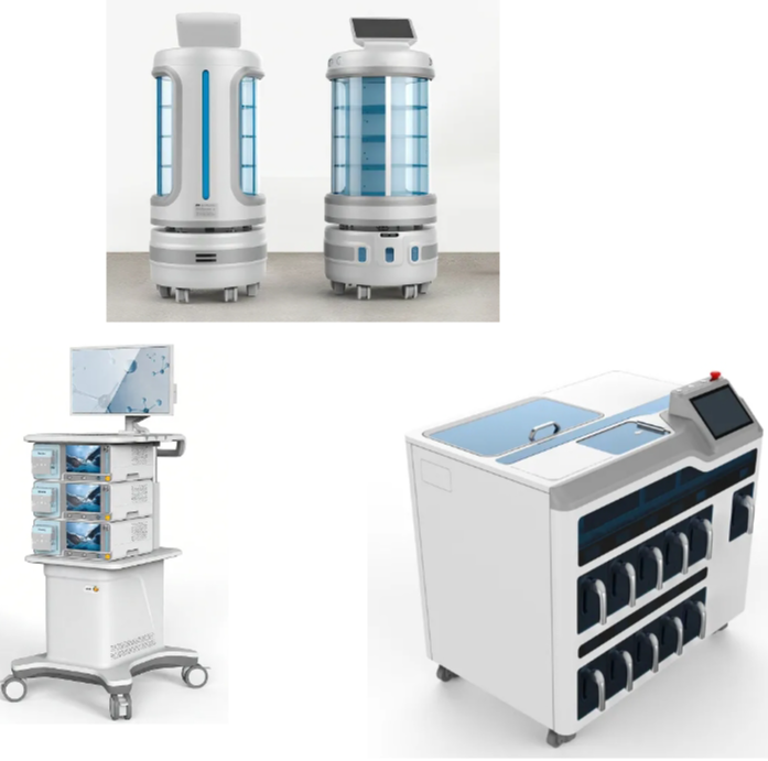 可自主完成药品、血液、医疗器械等智能配送、回收记录等工作,配置了高精度传感器导航系统,可以高效精确定位、识别、避让,助于医疗智能化管理。