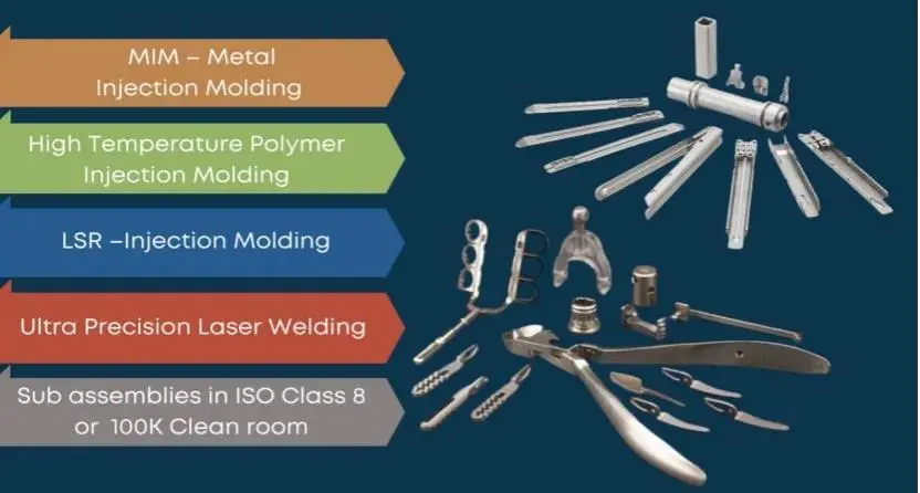 我们的经济高效的模具能力加上我们熟练的工程资源,可以制造以前由 MIM 认为经济性小的产品。INDO-MIM 开发了创新的模具概念,可有效的降低成本,以生产高度复杂的部件,这些部件通常由昂贵的五轴加工生产。这是加工的非常理想的替代方案,尤其是在需要快速增加产量时。INDO-MIM 完全有能力管理一次性仪器市场的大批量生产需求。INDO-MIM 不仅继续投资于最新的 MIM 技术,还继续投资于表面加工、热处理和性能表面涂层方面最先进的能力。我们不仅提供世界一流的 MIM 产品,还提供全方位的服务,包括塑料注塑成型、包射、供应链管理以及 ISO 8 级洁净室的集成和包装。