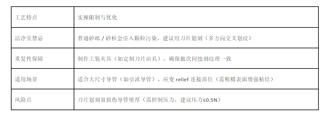 典型场景:大口径血管介入导管的手柄连接区,用机械蚀刻增加摩擦力,解决粘结松动问题。
