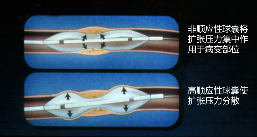 顺应性的变化主要取决于球囊材料的不同,临床上根据各种球囊的顺应性数值不同,将常用的球囊分为顺应性球囊、半顺应性球囊和非顺应性球囊: